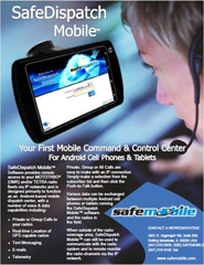 Prin integrarea aplicatiei SafeDispatch Mobile in strategia de comunicatii a companiei Dvs. puteti profita de tehnologia Android si dezvolta functionalitatile de voce si date. Tipurile de apel-catre statiile radio individuale sau de grup, localizare in timp real, SMS, email si alarme de telemetrie pot fi utilizate intre telefoanele mobile functionale pe sistem Android, cu aplicatia SafeDispatch Mobile instalata.